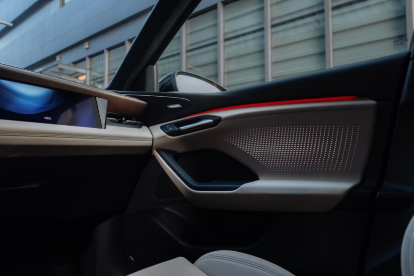 当然,作为智电旗舰车型,奥迪对两款车做了大量针对中国市场的专属定制。比如A6L e-tron轴距加长130mm达到3076mm,后排坐垫加长、海绵加厚;Q6L e-tron家族前排海绵厚度增加18mm,后排座椅角度增加2°。全系标配超纤绒顶棚,门板带呼吸感点阵发光,副驾屏有防窥隐私模式。语音系统联合思必驰,60秒识别10条指令,还支持四川话和粤语。这些细节谈不上颠覆,但恰恰是“豪华感”最直接的体感差异。